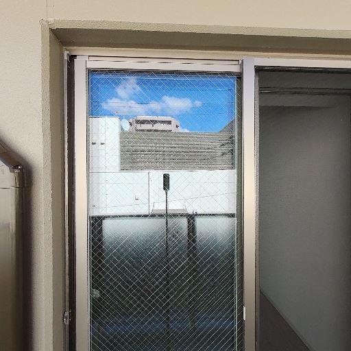 ガラスはワイヤー入りで安全性高め(確度86%):ワイヤー入りのすりガラスが採用され、防犯・飛散防止に配慮されている。