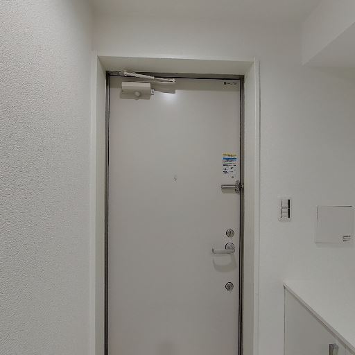 • インターホン(モニター付)(確度80%):ドア横にモニター付きインターホンらしき機器がある。