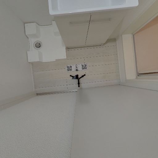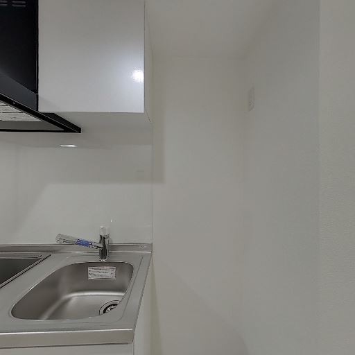 • 洗濯機置き場の存在(確度77%):底面画像に給水栓と排水口、コンセントがあり、洗濯機置き場と思われる。周囲は防水パンかカウンタースペース。