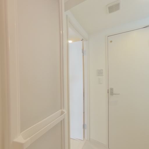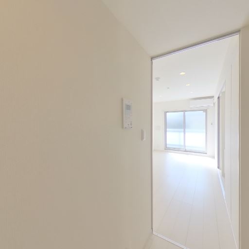 • 玄関から居室までの見通しがよく明るい(確度87%):玄関付近から奥の開口部まで視線が抜けており、自然光が廊下側まで届いているように見える。空間全体が白系で統一されているため、実際の広さ以上に明るく感じやすい。