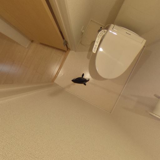 トイレ空間(温水洗浄便座)(確度90%):床面の便器と操作パネルが確認でき、温水洗浄便座が設置されている。