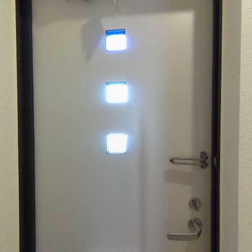 玄関ドアの採光窓(確度82%):玄関ドアに小窓が3つあり、日中の明かり取りになっている。