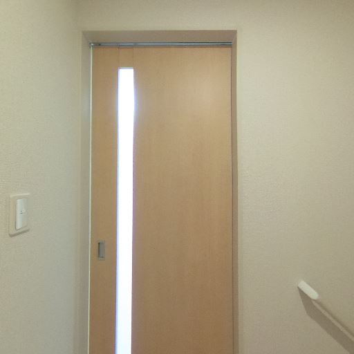 室内ドアの採光スリット(確度82%):片引き戸に縦長の採光スリットがあり、廊下に光を通す。