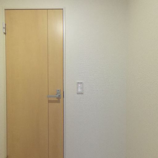 収納・ドアの複数設置(確度67%):木目のドアが2カ所見え、ホールから各室へアクセスできる。