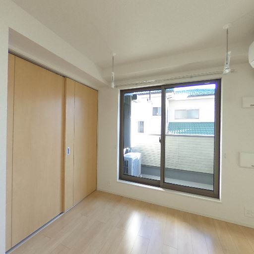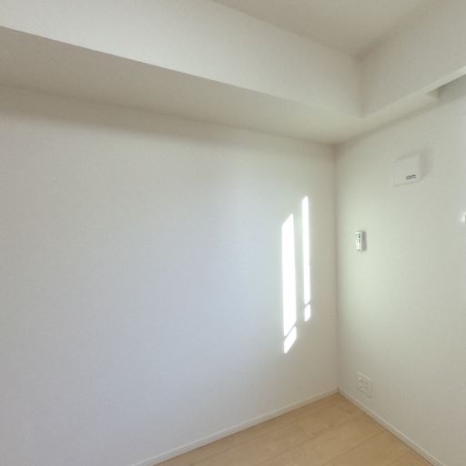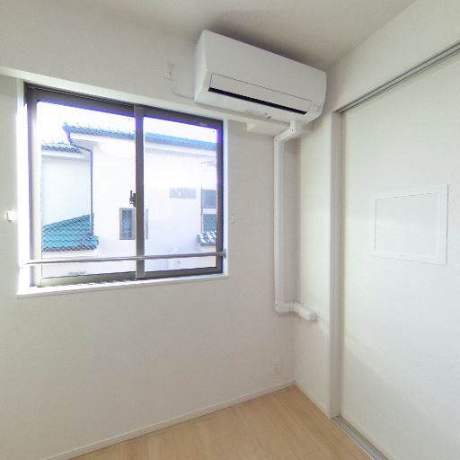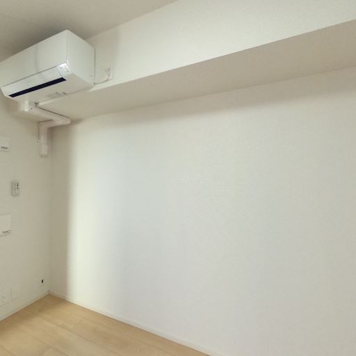 エアコン設置済み(確度92%):壁上部にエアコン本体と配管カバーが確認できる。