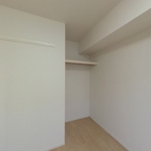 収納・ハンガーパイプ(確度78%):壁面に長いハンガーレールと奥に棚板付きの収納スペースがある。