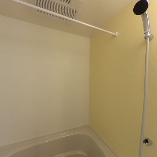 浴室乾燥機・換気設備あり(確度90%):浴室天井に換気乾燥機の吹出口が確認できる。