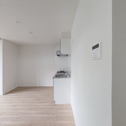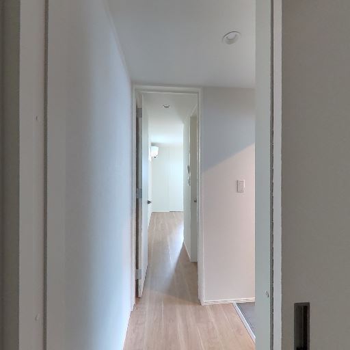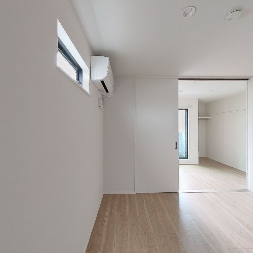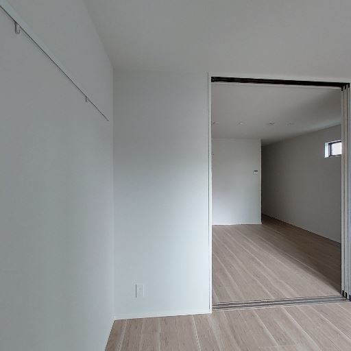 室内の新しさ・清潔感(確度70%):壁や建具、床が白基調で傷や汚れはほとんど見受けられない。