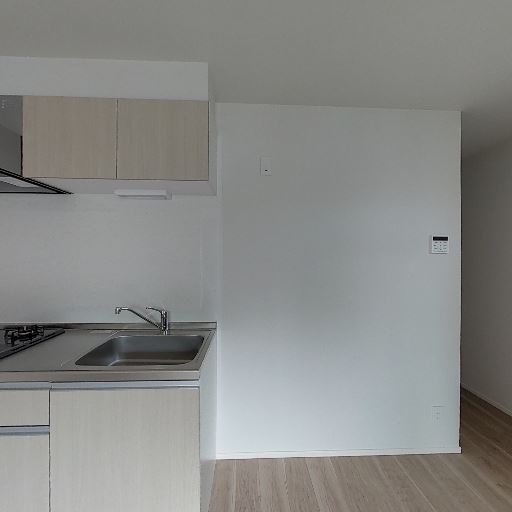キッチンはコンパクト(確度82%):シンクとコンロが一直線に並ぶ単身向けサイズのキッチン。作業スペースはやや限られる。