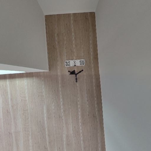 壁面フック/ピクチャーレール(確度77%):壁上部に長いレールがあり、フックを使って小物やアートを掛けられそう。