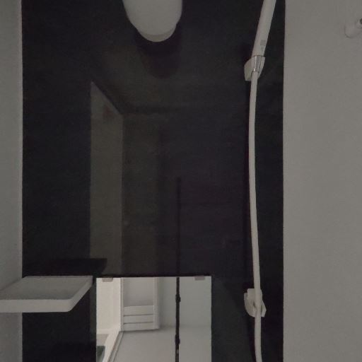 浴槽付きユニットバス(確度88%):コンパクトな浴槽とシャワー、カウンターや棚がある一般的なユニットバス。