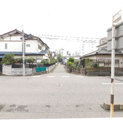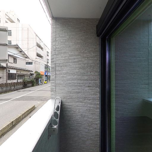 前面が道路に面したバルコニー(確度78%):バルコニーの正面は住宅街の道路で、建物との距離は比較的近い。視線や車通りの影響を受けやすい立地に見える。