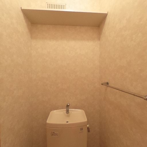 収納棚の存在(確度86%):タンク上に奥行きの浅い棚が備え付けられている。トイレットペーパーや掃除用品を置ける。