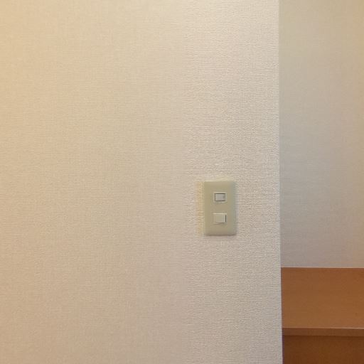 給湯・換気設備の操作盤(確度68%):壁面に給湯等の操作パネルが設置されている。