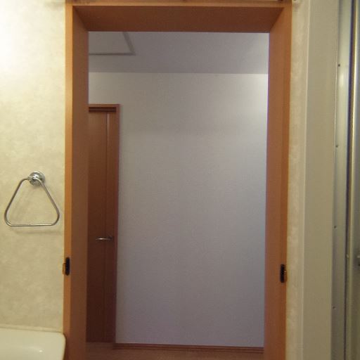 小物掛け・タオルリング(確度75%):洗面横の壁にタオルリングが備わっている。