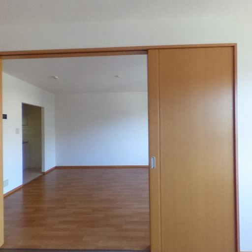 可動間仕切り(引き戸)で空間を分けられる(確度80%):大きな引き戸で隣室と仕切れる。開放すると広いワンルーム感になる。