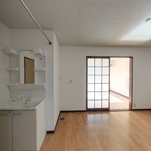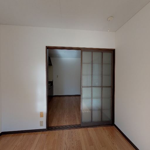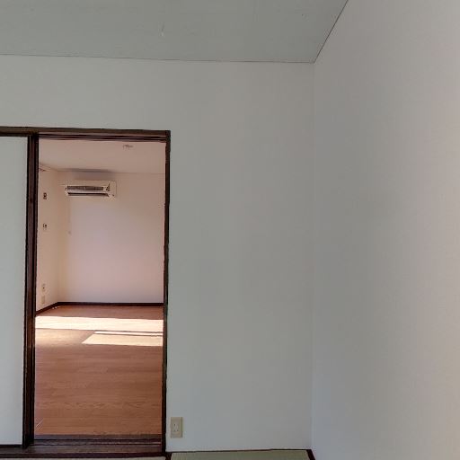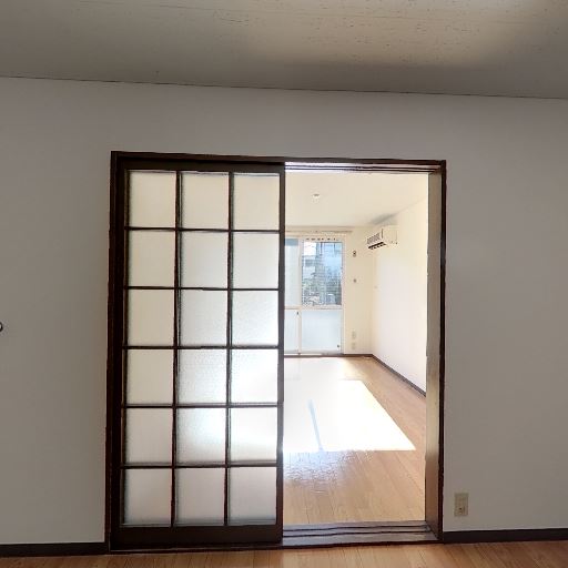 • 隣室と引き戸で接続(確度77%):開口部の先にフローリングの部屋が見え、エアコンも確認できる。
