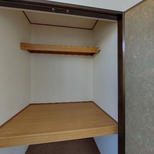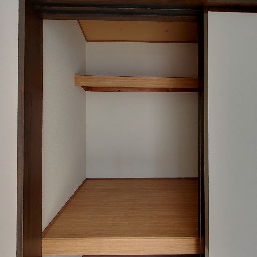 • 押入れ収納あり(確度90%):和室の壁面に棚付きの押入れがある。上下2段で布団や季節物の収納に使えそう。
