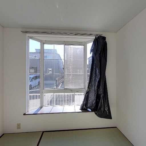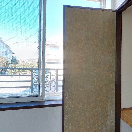 • 窓まわりの設備(確度80%):窓上にカーテンレールが確認できる。網戸越しの外も見えるため通風も期待できる。