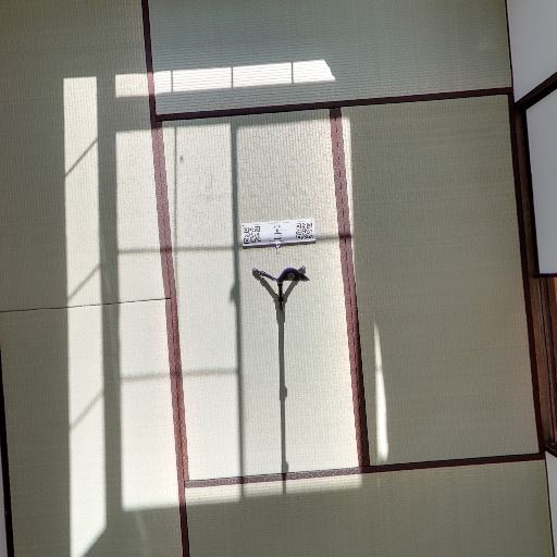• 和室(畳)の明るさ(確度90%):掃き出し窓から強い日差しが入り、床の畳にくっきり影が出ている。