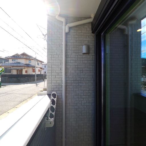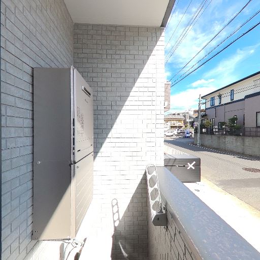 前面が駐車場で抜け感あり(確度82%):バルコニー正面は月極駐車場と道路で建物が近接していないため、視界が開けている。