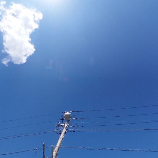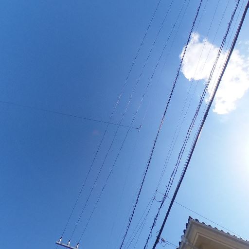 • 日当たり・空の開放感が高い(確度84%):周囲に高い建物が少なく、強い日差しと青空が広く見える。電線はあるが採光を遮る要素は限定的。