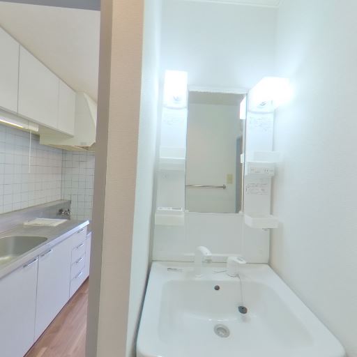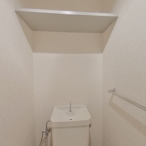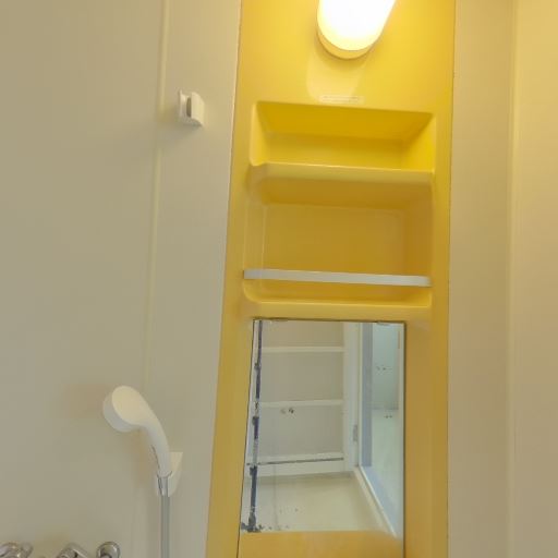 • 収納棚付きの浴室スペースがある(確度73%):浴室入口側に棚が見え、タオルや洗剤などを置ける収納スペースが確保されているように見える。