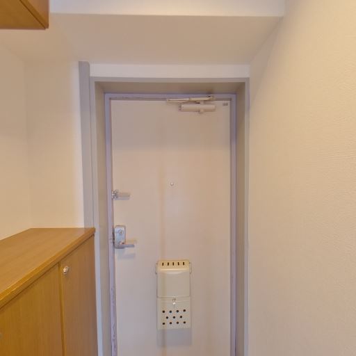 • 玄関収納が備え付けられている(確度92%):玄関脇に木製の下足箱または収納棚が設置されており、靴や小物を整理しやすい構成に見える。