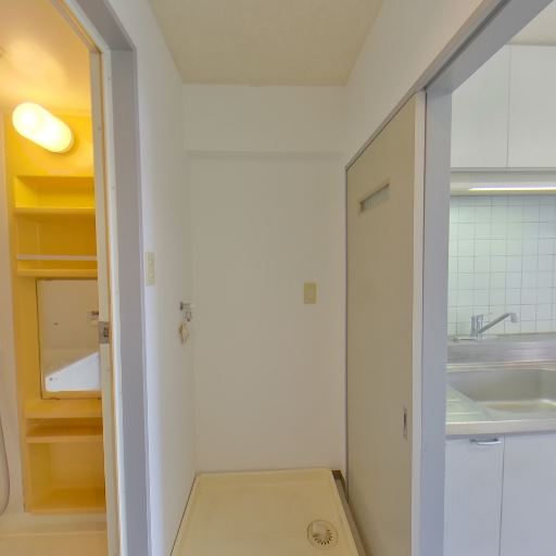 • 室内洗濯機置き場がある(確度97%):防水パンと排水口、水栓が確認でき、室内に洗濯機置き場が確保されている。