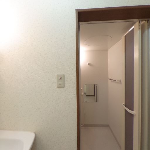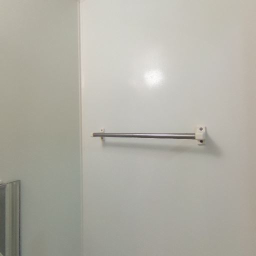• 室内物干しまたはタオル掛けがあり実用的(確度76%):浴室側にバーが見え、洗面室側にもタオルリングがあるため、タオル掛けや軽い室内干しに使える設備が備わっている。