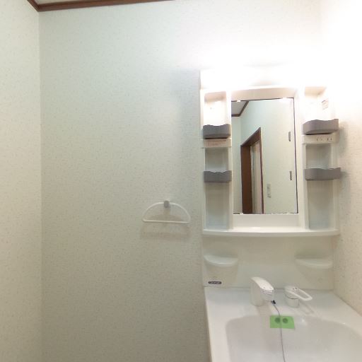 • 洗面化粧台の収納性(確度88%):洗面台まわりにミラー脇の棚や小物置きがあり、洗面用品を整理しやすい構成に見える。