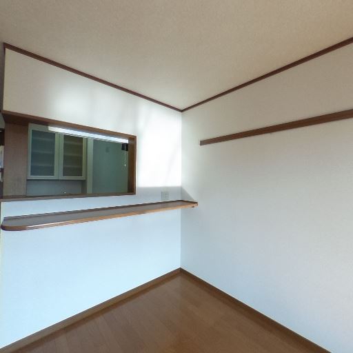 • キッチンとのつながりがあるカウンター開口(確度87%):壁面にキッチン側と思われる対面カウンターの開口部があり、配膳や会話がしやすい間取りに見える。