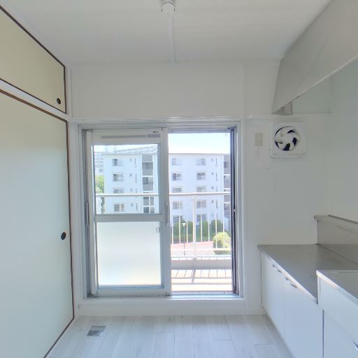 換気設備(確度70%):キッチン側壁面に小型換気扇があり、調理時の排気が可能。
