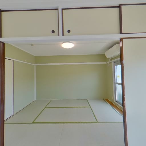 和室とエアコン設置(確度80%):奥の居室は畳敷きで、壁面にエアコンが設置されている。