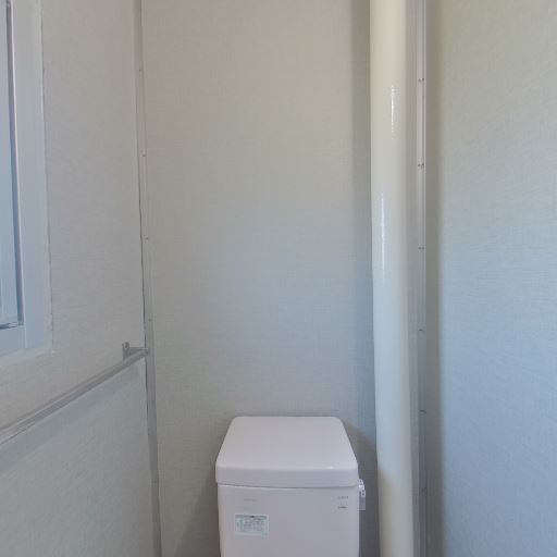 清潔感のある内装(確度74%):壁紙・床・便器に目立つ汚れや傷が見当たらず、全体的に明るく清潔に見える。