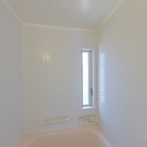 浴室に縦長の窓あり(確度85%):浴室の壁面に細長い縦窓があり、自然光と換気が期待できる。
