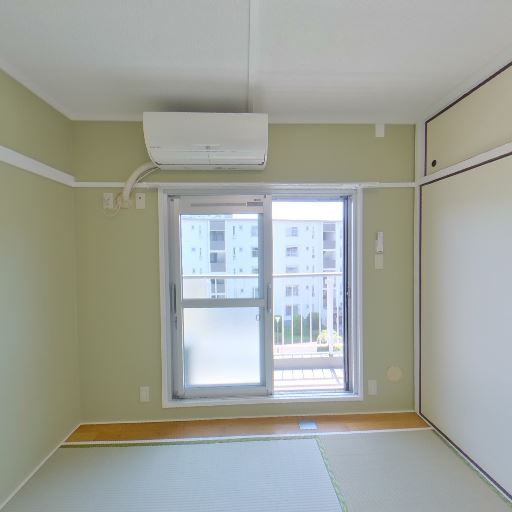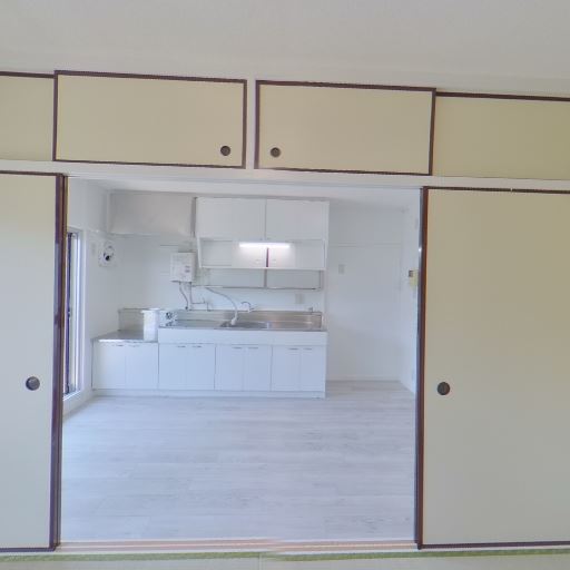 和室スペースの存在(確度73%):隣接室が畳敷きで、押入れ収納とエアコンが見える。
