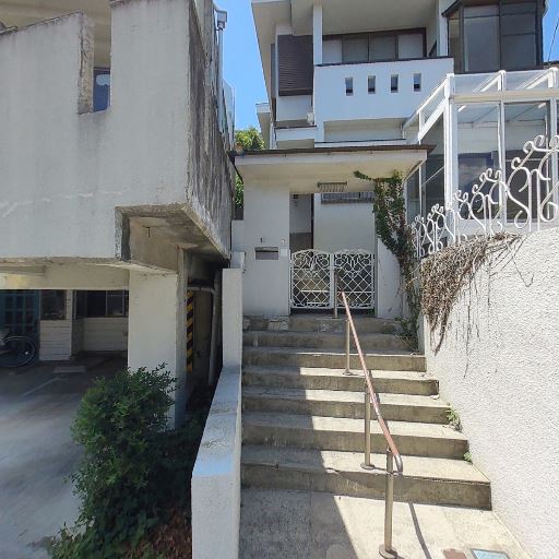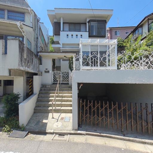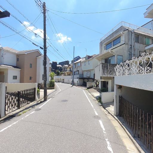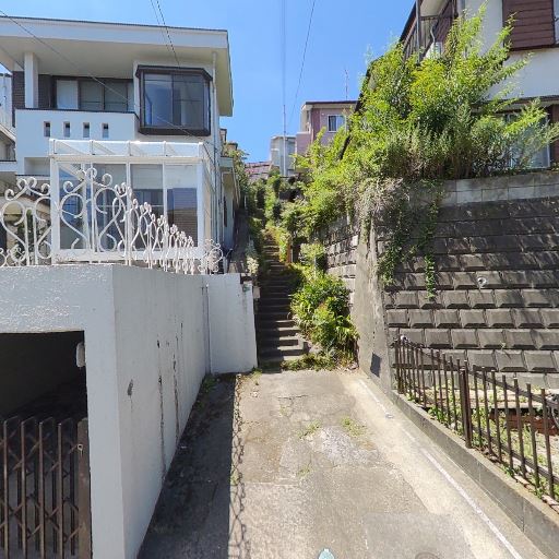 高低差のある立地(確度83%):敷地へ続く細い階段状のアプローチが見え、周辺に擁壁もあるなど勾配のあるエリア。