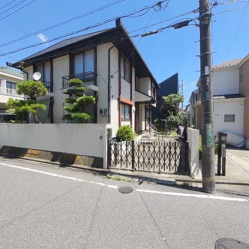 前面道路は閑静な住宅街に面する(確度69%):門外に低層住宅と電柱が見え、交通量は少なそう。