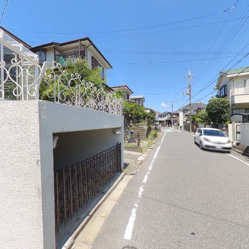 駐車関連の利便(確度58%):道路はやや狭めの生活道路で、家の前に車道と歩道の段差は小さい。隣接地にガレージ状のスペースが見えるが、本物件の専用かは不明。