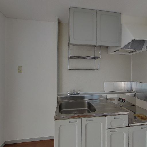 • キッチン設備の状態(確度80%):ステンレス天板の流し台・ガス台、上部吊戸棚、換気扇フードが確認でき、全体的に清潔で傷みは少ない。