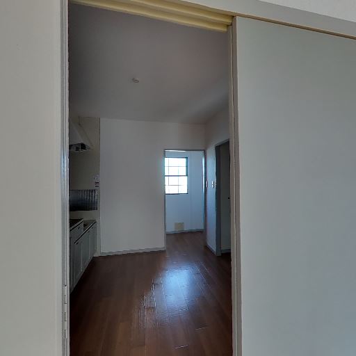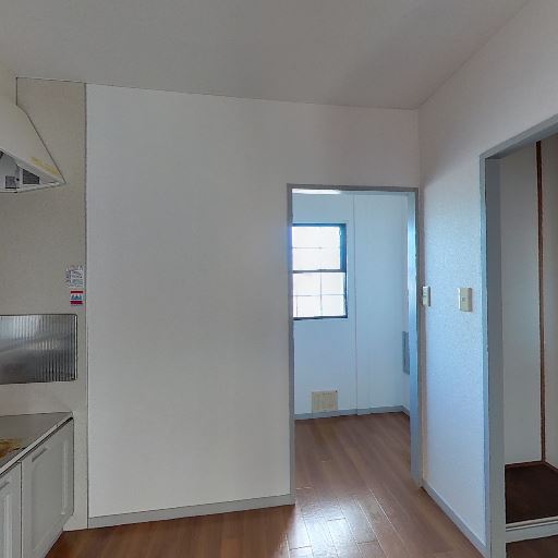 • 採光と明るさ(確度77%):隣室側に大きめの掃き出し窓があり、キッチン側まで自然光が差し込んでいる。
