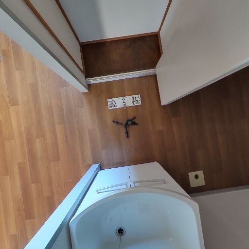 • 室内洗濯機置き場(確度80%):床に給排水口・固定金具があり、洗濯機置き場が室内に確保されている。