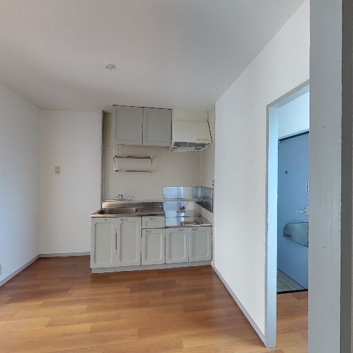 • キッチンは単身向けサイズ(確度82%):流し台・コンロスペース・吊戸棚のあるコンパクトなキッチン。作業台はやや小さめ。