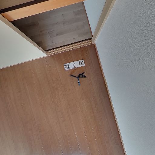 • 床の状態(確度67%):フローリングは艶があり全体的にきれい。中央に三脚跡のような一時的な器具が置かれているが傷は見えない。