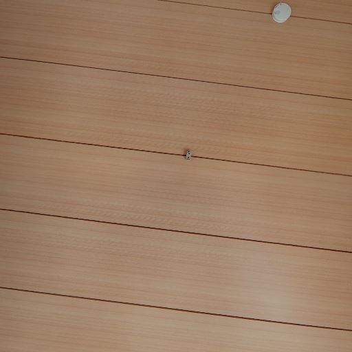 • 天井のデザインと傾斜(確度74%):木目調の天井で、わずかな勾配が見られる。照明ソケットと火災報知器あり。