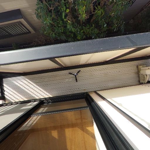 • 日当たりは良好(確度86%):空が広く抜けており、ベランダと室内床付近まで強い日差しが差し込んでいる。