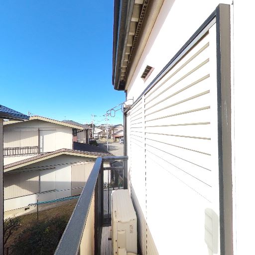 • ベランダの設備(室外機・物干し金物)(確度90%):ベランダにエアコン室外機と物干し金具が設置されている。