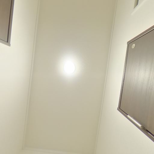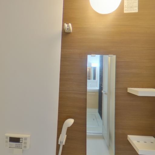 天井照明と換気設備(確度71%):天井にダウンライトがあり、別途天井機器(換気扇または浴室暖房のコントローラ)が見える。