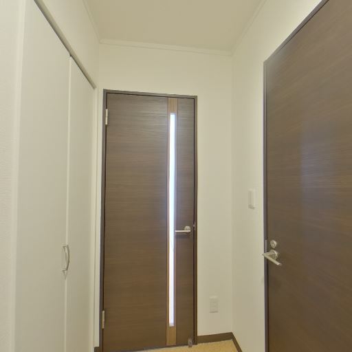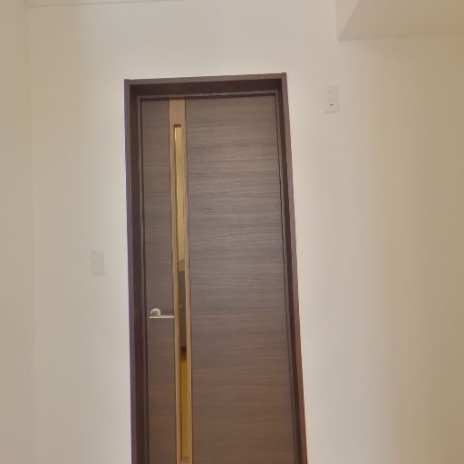 室内ドアに採光スリット(確度78%):室内側のドアに縦長のスリットガラスがあり、廊下に明かりを通す設計。